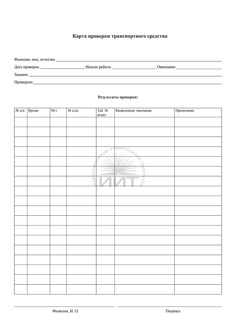 - Карта проверки транспортного средства