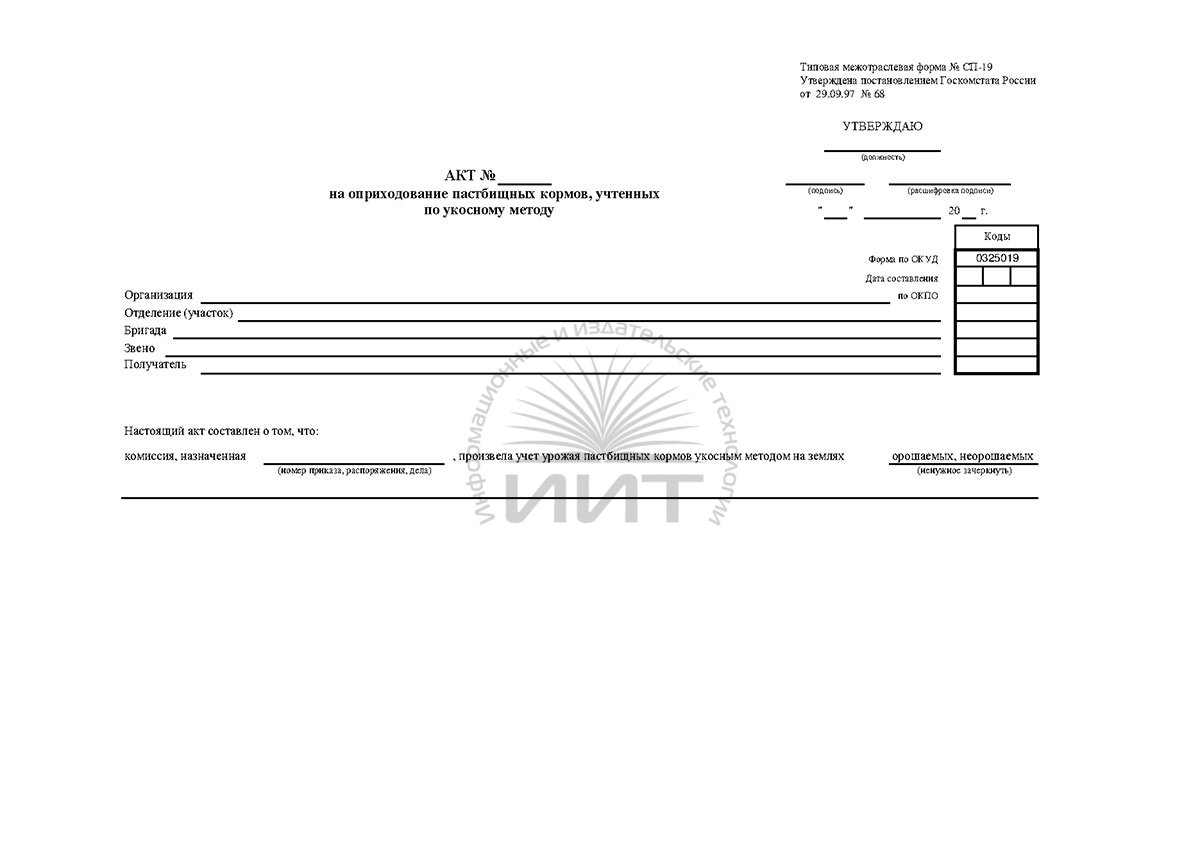 Несмотря на то, что использование этого документа уже никем не регламентировано, его продолжают применять с сельском хозяйстве. Нана типография печатает двухстраничную форму акта на оприходования сырья и склеивает бланки в блоки по 50 экз.