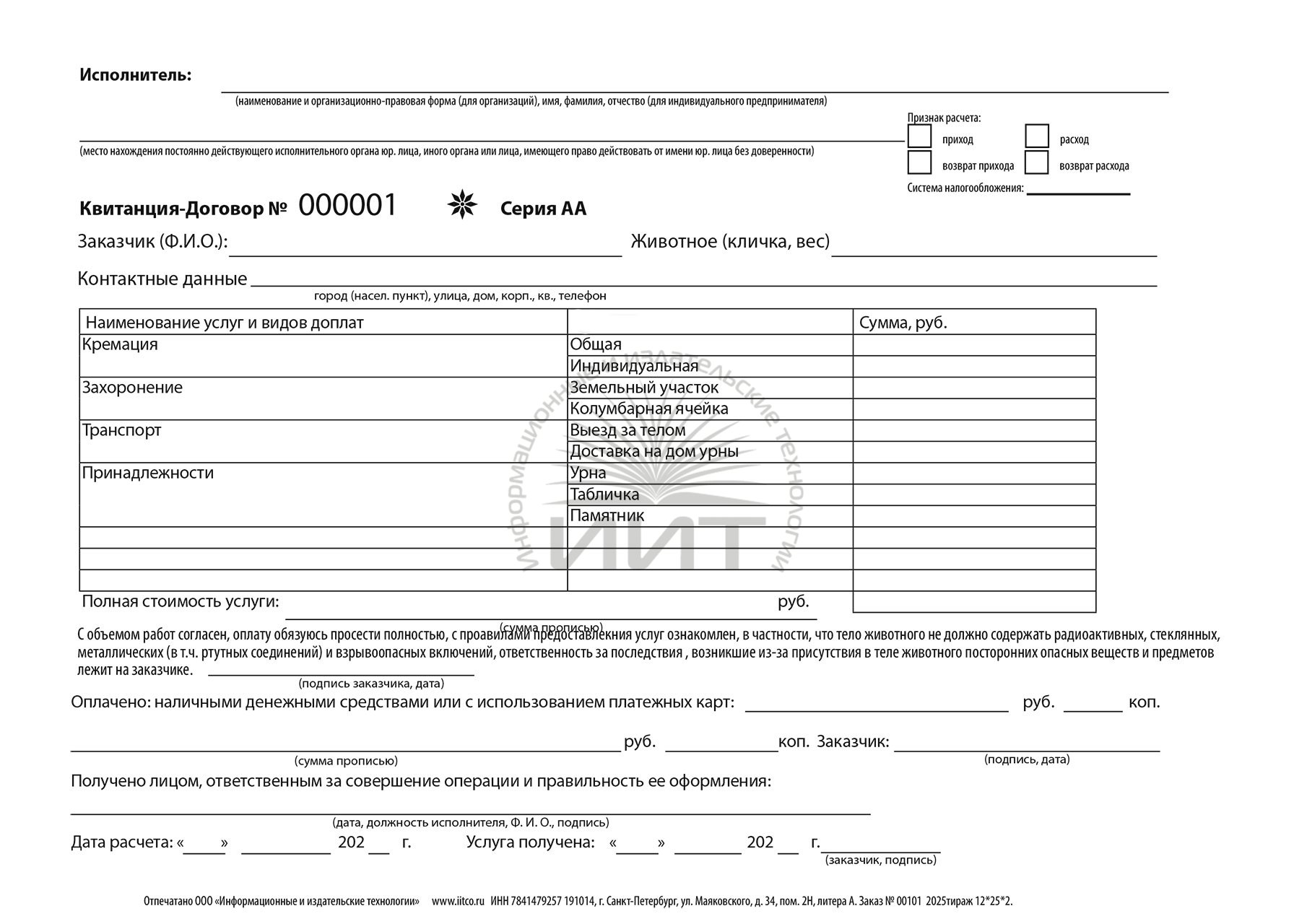 - Бланк похоронных услуг для животных