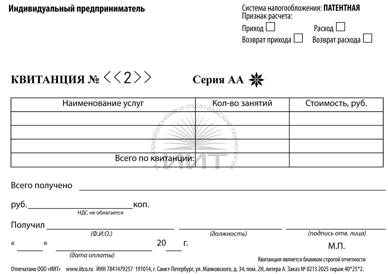 - Квитанция для работы по патенту