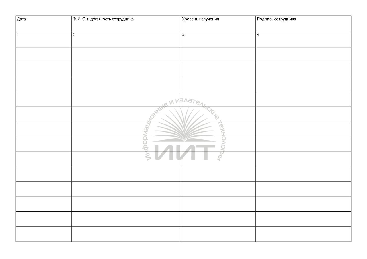 В журнал учета проведения замеров заносятся дата замера, Ф. И. О. и должность сотрудника, сделавшего замер, уровень излучения (показатель с приборов или датчиков), подпись сотрудника.