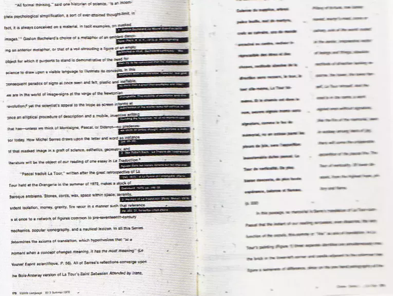 Рис. 7. Страницы с деконструкцией текста. Журнал Visible Language, выпуск "French Currents of the Letter", лето 1978. студенты Cranbrook Academy of Art под руководством Katherine McCoy