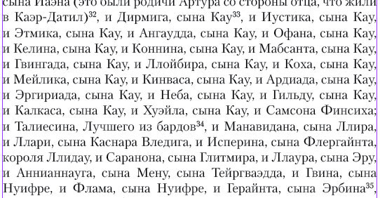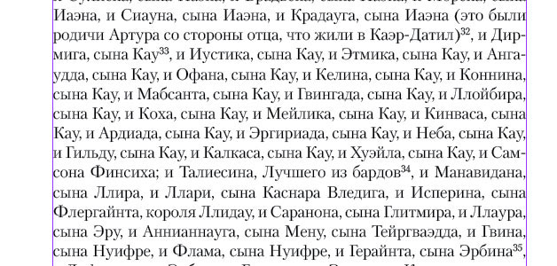 Иногда при верстке исторической литературы, источников, эпосов можно встретить много (а иногда очень-очень много) имен собственных, перечислений родов, топонимов. Это обрекает версточника на дополнительный труд. Традиция огромных списков чего бы то ни было через запятую — головная боль для тех, кто приводит текст в читабельный вид, ведь это все изначально было предназначено не для записи, а для устной декламации вслух. Но у нас получается справляться с этим не в ущерб эстетике текста.