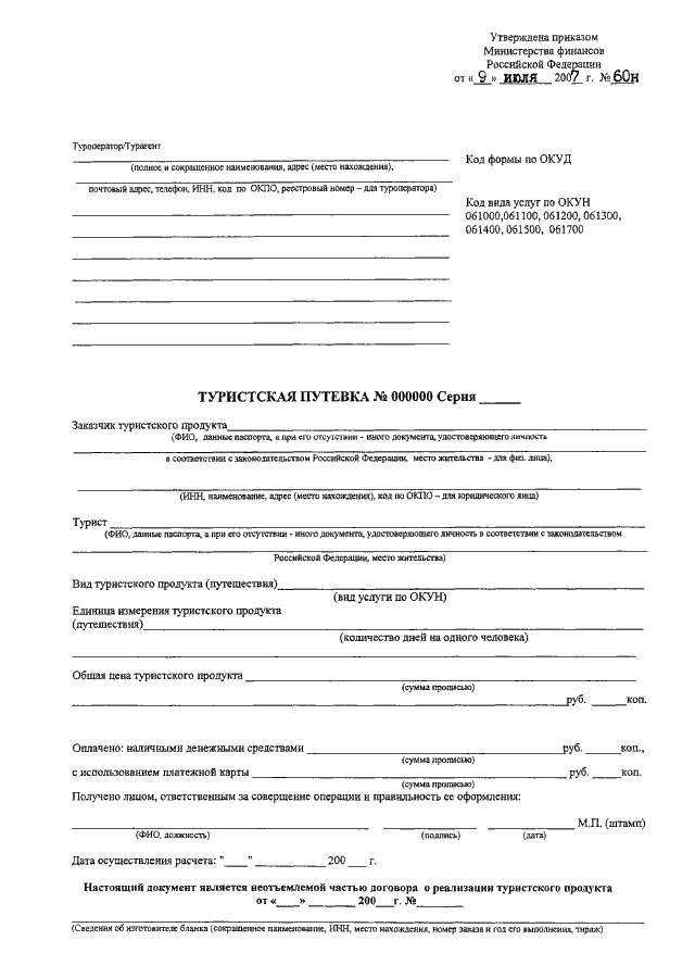 Утверждение формы туристской путевки